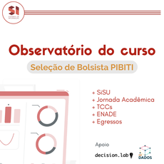 Em parceria com o decision.lab e labdados, estamos com uma 1 vaga para discentes de graduação no Programa Institucional de Bolsas de Iniciação em Desenvolvimento Tecnológico e Inovação (PIBITI). Detalhes abaixo.